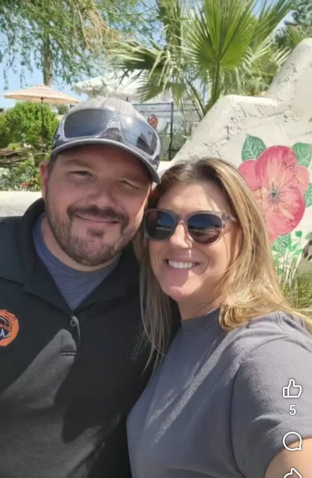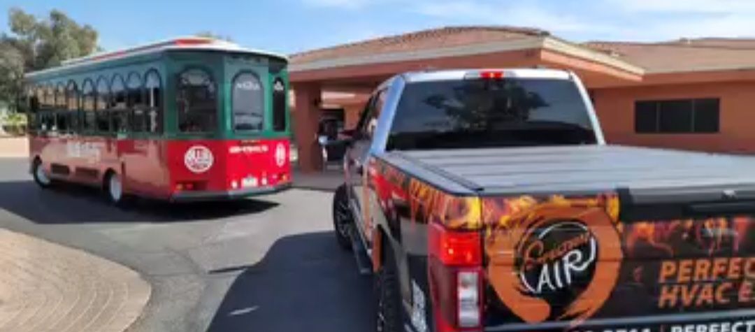 An air conditioner is sitting on the side of a brick building next to a flower.